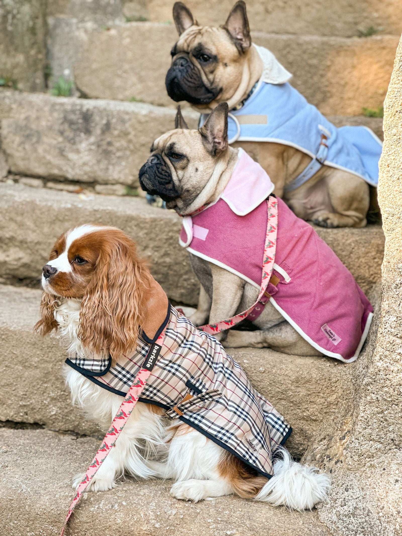 Disponíveis em três cores/padrões: Xadrez creme acolchoada, bombazine Azul bebé e bombazine Rosa.