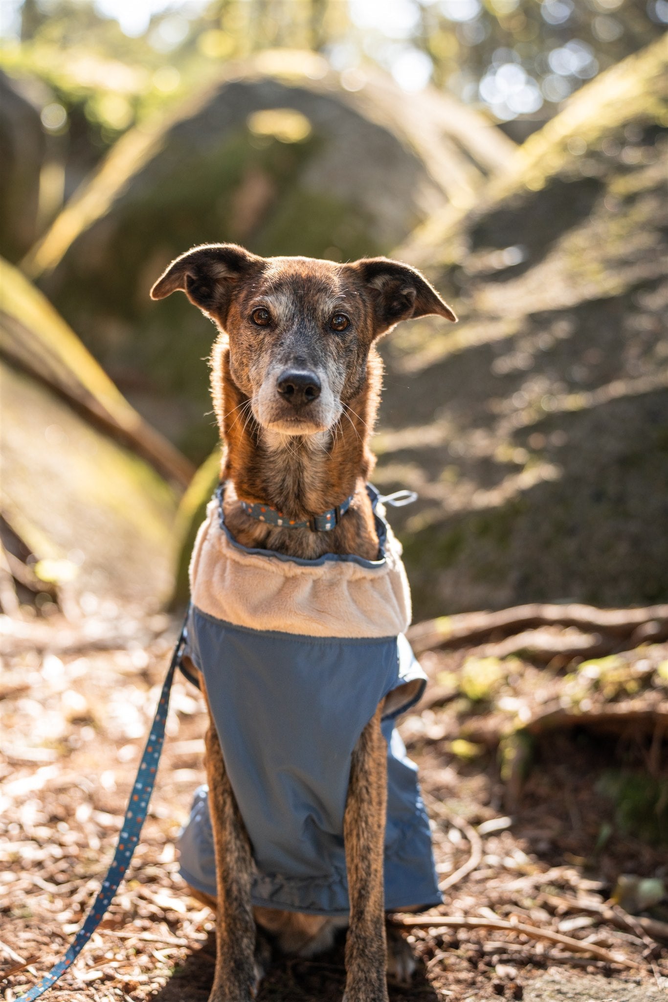 - Ajustável no pescoço e na barriga com elásticos;