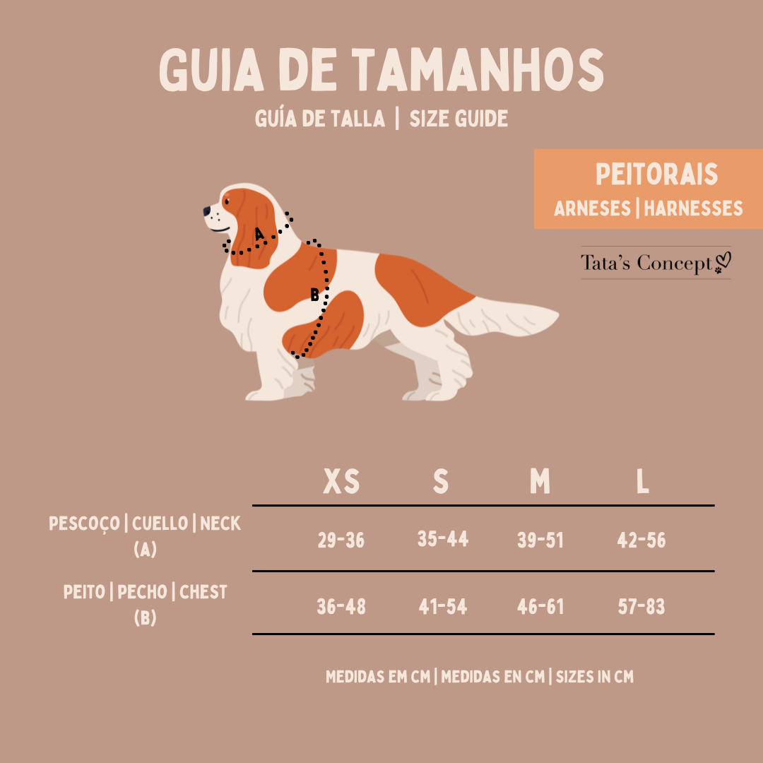 Peitoral ajustável no pescoço e no peito;